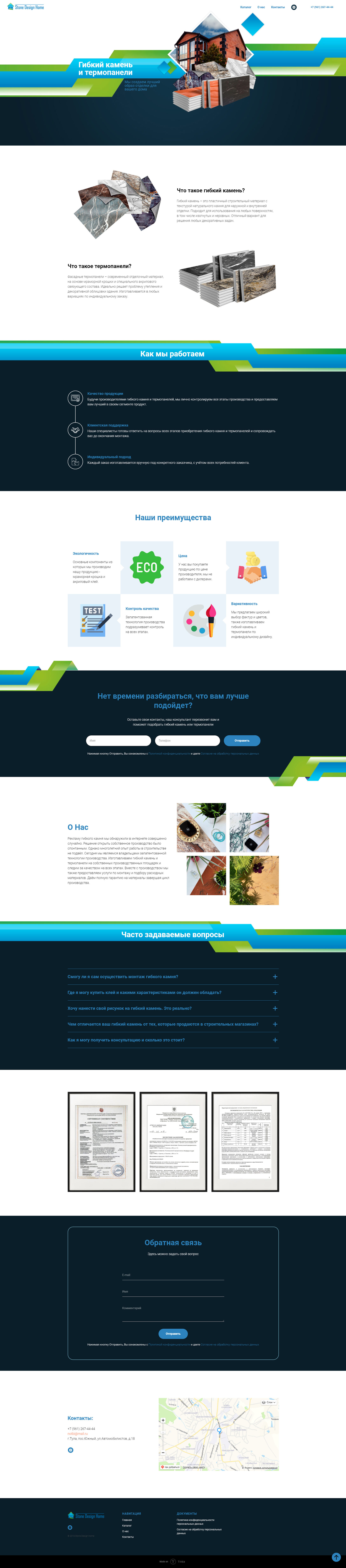 Сайт для интернет магазина Stone Design Home по продаже гибкого камня и термопанелей с каталогом товаров.